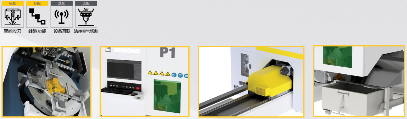 标配气动管材支撑装置: 方便装载原材料 ,抑制细管高速切割抖动 ,提高切割精度及断面质量 。