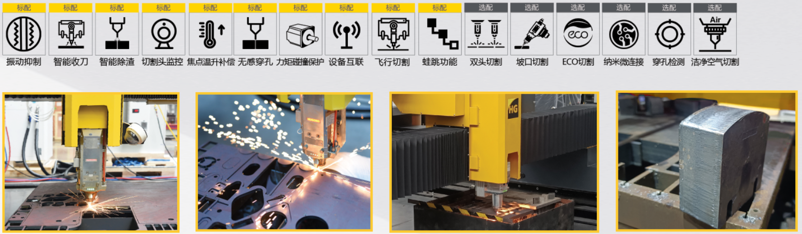 可配置双头切割:可搭配双激光切割头 ,高强度横梁可承载双切割头的高速切割 ,专用激光切割头 ,满足客户24h不停机的连续切割 。