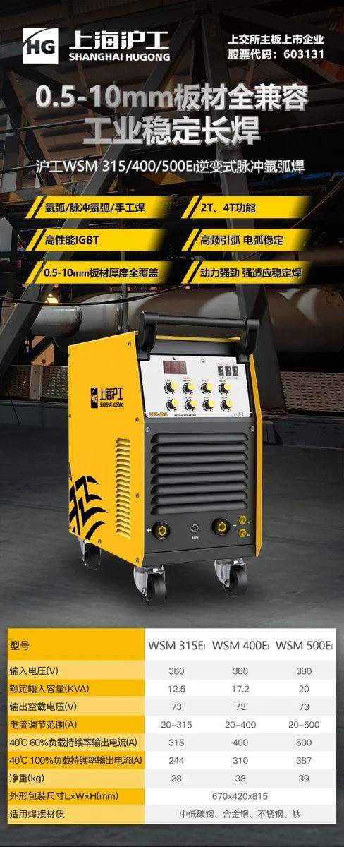 高功能IGBT逆变新技术 ,增大体型大小和载重量 ,变低消耗的资金 ,彩石对接焊成功率更为显著 。 dafa888手机版WSM 315/400/500EI工艺级氬弧焊集氩弧、智能氩弧、创意手工焊半年策略于通身究竟是精致不锈钢焊接还是要专业施工作业 ,均能简单积极应对