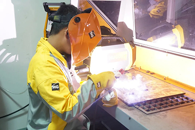 ① 所用底于在平日15%-20%瞬时电流; ② 焊丝跳动应中央快两旁慢 ,在角处稍停下; ③ 脉冲压短; ④ 发现了熔池铝合金往下坠 ,完毕熄弧下降 ,再引弧焊 。立焊预防